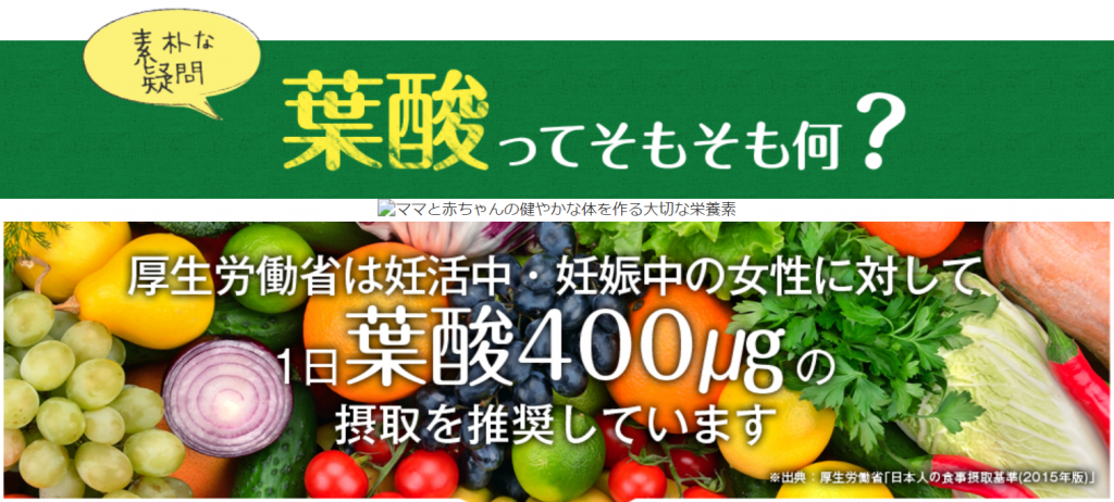 厚生労働省は通常の食品に加えて、栄養補助食品から1日に葉酸を400μg摂ることを推奨しています。