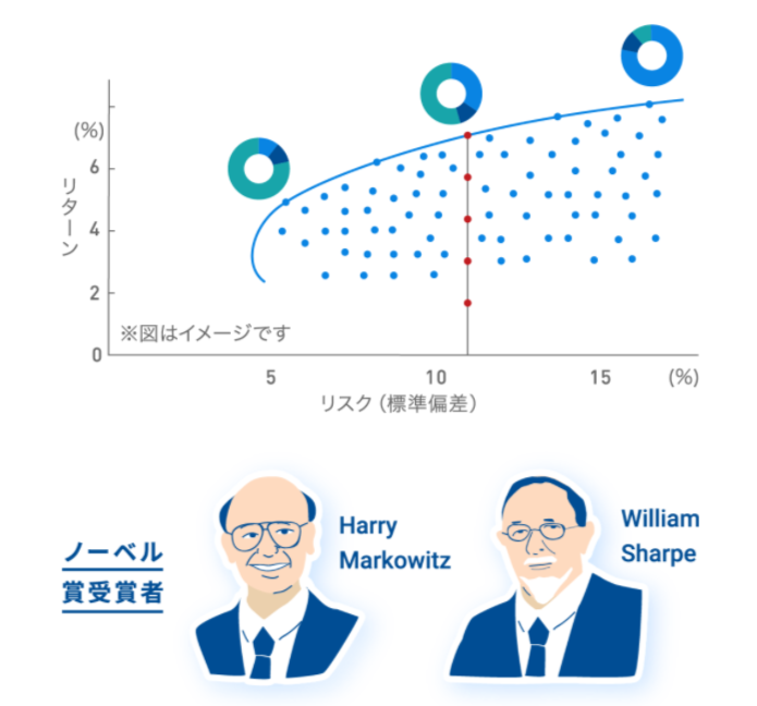 WealthNaviは、ノーベル賞受賞者が提唱する理論に基づいた金融アルゴリズムを採用しています。